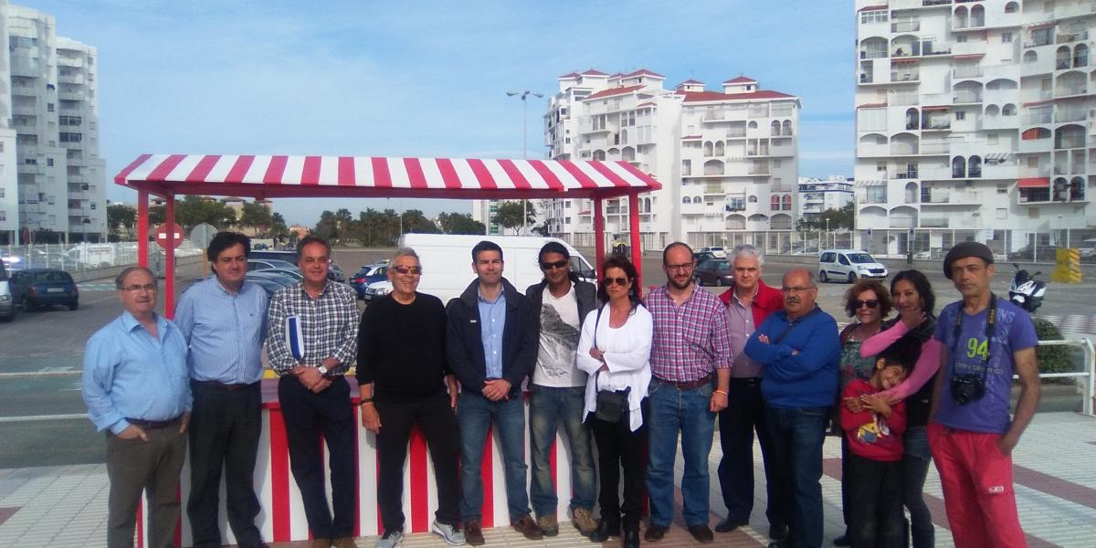 En la tarde del pasado miércoles el concejal delegado de Comercio Ángel Quintana mantuvo un encuentro con las asociaciones de comerciantes, artesanos y vecinos, representantes del hotel Puerto Bahía, periodistas y concejales de la Corporación Municipal a fin de formalizar un acuerdo tanto para su ubicación como para el diseño del mercado. Durante el encuentro la concejalía de Comercio procedió al montaje de uno de los puestos a fin de darlo a conocer y determinar del mismo modo la idoneidad de la ubicación escogida finalmente.